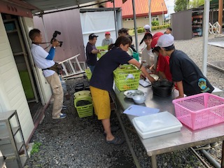洗った食器や鍋は係の方に点検してもらいます。ご飯つぶや煤が残っていないかチェックを受けます。合格にならなければ、もちろんやり直しです。