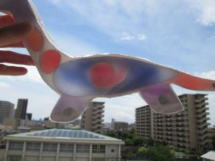 図画工作科の学習では、光を通したい材料からつくりたいかざりを考えています。