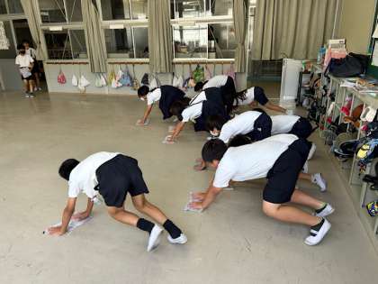 もうすぐ1学期も終わりということで、今日は大掃除をしました。机といすをろうかに出して、雑巾かけをします。4月には新品ピカピカだった仮設校舎も、いつの間にか汚れがたまっていました。みんなで時間をかけて拭いていき、ずいぶんきれいになりました。2学期からまた気持ち新たにがんばれそうです!