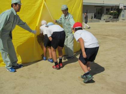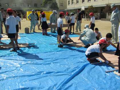 「煙中歩行」「簡易たんか」「あっぱ君」の体験です。