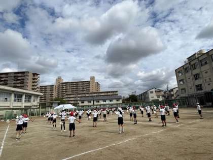 暑い中、運動場での練習を頑張っています。エイサーの時に使用するパーランクを画用紙で作り、運動会の目標も書きました。みんなの運動会の気持ちがさらに高まったのではないかなと思います。