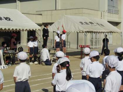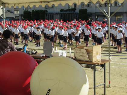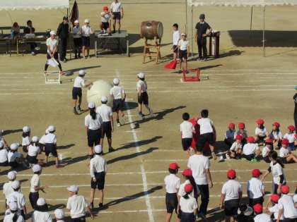 開会式、閉会式、そして、全校競技の「大玉GO!GO!!」の練習をしました。