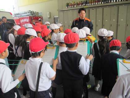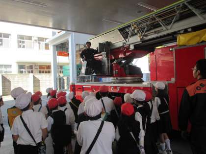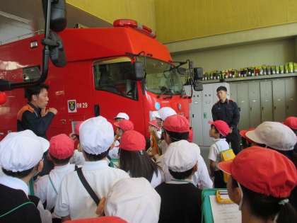 各クラスに分かれて、消防車や救急車を見せてもらったり、消防署の中を見学させてもらったりしました。