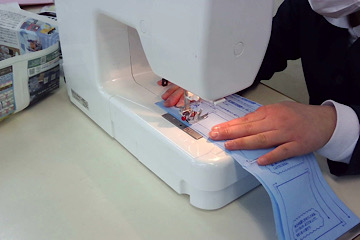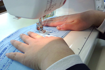 5年生は今、家庭科でミシンの使い方を学習しています。今日は返し縫いを習いました。みんな頑張って取り組んでいました。