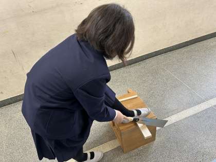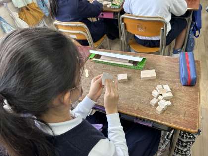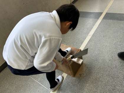 今日の図画工作はのこぎりを使って、木をきりました。みんなしっかりと話を聞き、安全に気をつけて作業していました。紙やすりで仕上げもし、来週からは組み立てていく予定です!
