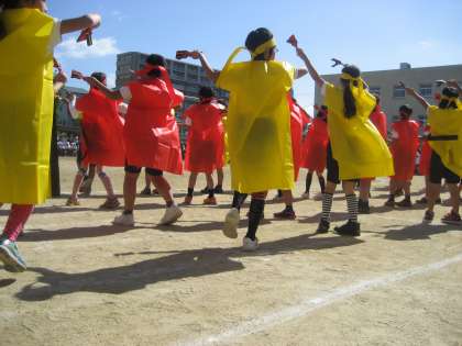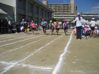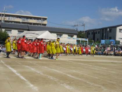 5年生のよさこい鳴子踊りです。鳴子の響きは、心をひとつにした5年生の響きでした。午前の部の最後は、リレーです。手に汗にぎるレースでした。