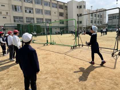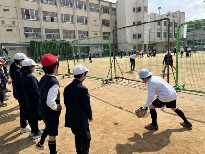 大谷選手から送られてきたグローブを使って休み時間にキャッチボールをしました。みんなで交代しながら仲よく遊ぶことができました。