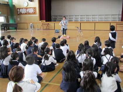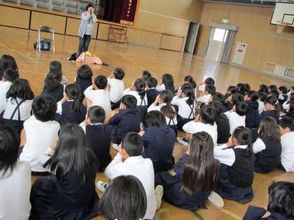 子ども達は、「盲導犬」を目の前にし、興味津々で聞き入っていました。