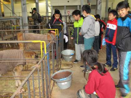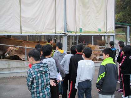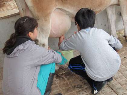 えさやり、乳搾りの体験をしました。