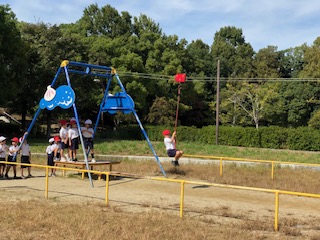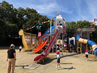 お弁当を食べて恐竜広場へ移動しました。ここでも遊具で楽しく遊んでいます。日ざしがかなり強いですが、1年生はまだまだ元気いっぱいです。