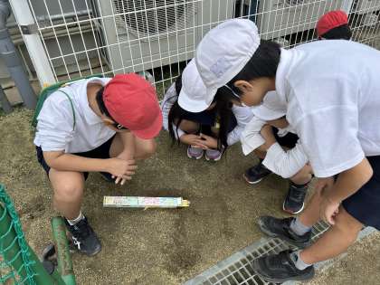 今日は理科の学習で地面の温度を測りました。午前9時と正午の2回測定し、日かげと日なたのどちらがあたたかいかを比べました。みんな積極的に実験に取り組み、正しく測ることができました。また家でも話を聞いてあげてください。