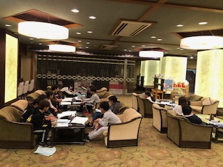室長が集まり、この後、そして明日の朝の予定を確認しています。まもなく就寝です。