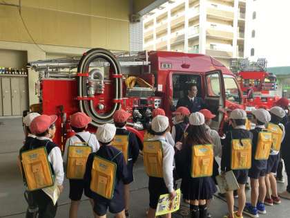 3年生は午後から消防署見学に行きました。普段なかなか見ることができない消防車の中や消防署の施設の中までたくさん見せていただき、子どもたちも大喜びでした。これまで社会科で消防署の仕事について学習してきましたが、実際に自分の目で見たり、話を聞いたりすることでより一層学習の定着につながったのではないかと思います。とても良い経験になりました。