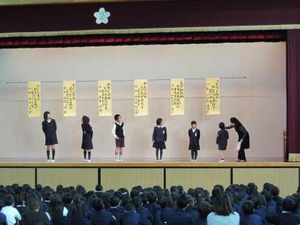 「読書感想文」「ミニバスケット(女子)」「生活安全標語」の表彰がありました。