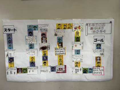 金曜日の参観で作成を始めた「思い出すごろく」が完成しました!このすごろくを見ると、いろいろなことがあった1年間を振り返ることができます。私たちも子どもたちが成長したなと改めて実感することができ、嬉しいですがお別れがさみしくなります…。