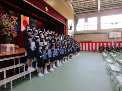 第131回の卒業式を行いました。今年度の卒業生は72名。校長先生から一人ひとり卒業証書を受け取りました。よびかけでは予行の時以上に力を発揮して、素晴らしい式となりました。4月からは中学生として新たな目標に向かって頑張ってくれると期待しています。保護者の皆様、6年間、ご支援いただきありがとうございました。