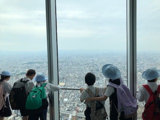 ハルカス展望台から東西南北を眺めています。少し曇っているため、淡路島等遠くはかすんでいますが、大阪市内、府下はよく見えています。