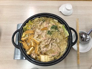 夕食は味噌鍋です。楽しみにしていたようで、元気すぎるくらい元気でよく食べています。ご飯のおかわりは自由です。ありがたいです。