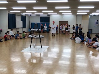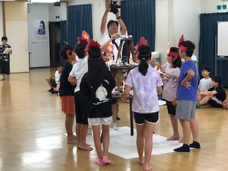 始まりました。火の神から受け取った炎を係の子たちがキャンドルに灯しました。