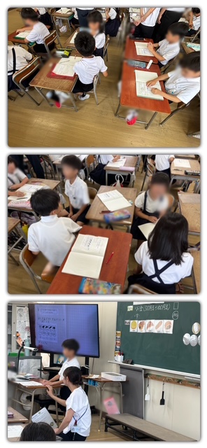 算数科では、「買えるか買えないか」の学習をしました。100円ぴったりではない、98円や105円の値段の物を持っているお金で買えるか買えないかを図を書いたり、100円と物の値段の大きさ比べをして考えたりしました。