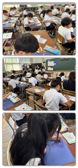 みんなイメージを広げながら、楽しんで描いていました。夜のイメージが出るように、建物の背景も描きました。