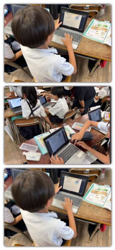 算数では、デジタル教材で復習の学習に取り組みました。わり算の応用問題にチャレンジしました。
