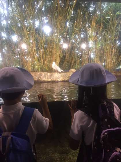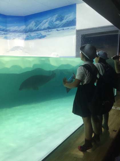 今、琵琶湖博物館での様子です。生き物や植物の生態系を学習しています。もうすぐ、お昼御飯です。