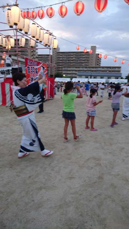 今年の盆踊りは地域の方からのお話があり、子どもタイムを設定していただきました。子どもたちが盆踊りを一生懸命踊っていました。12日も6時30分から予定しております。