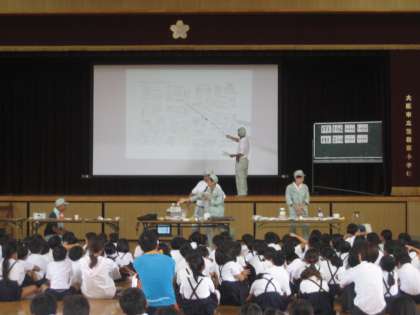 今回の土曜授業は防災教室です。煙中歩行や防災グッズの紹介・活用方法など学習しました。最後に避難訓練をして集団下校を実施しました。