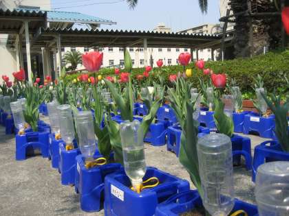 植木鉢では、2年生が植えたチュープップが風に揺れています。