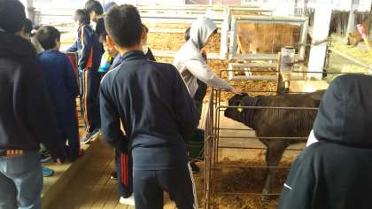 のんびり学習牧場では、厩舎の掃除やポニーを引き連れて歩く仕事をします。みんな、頑張っているようです!