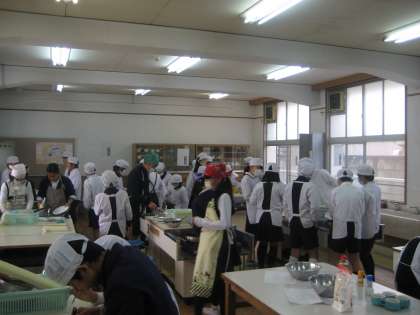 12/5(火)1,2時間目(6−1)・3,4時間目(6−2)に調理実習を行いました。