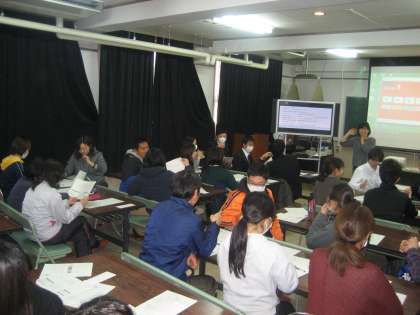 1月31日、茨田南小学校で茨田中学校と茨田中学校校下の3小(茨田小・茨田西小・茨田南小)で『小学校低学年からの英語研修』が実施されました。大阪市教育センターよりケイザー先生をお招きして、2時間の間いろいろな学習内容を教えていただきました。来年度から移行期間に入る新学習指導要領に対応した外国語学習の研修になっていました。