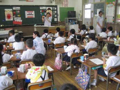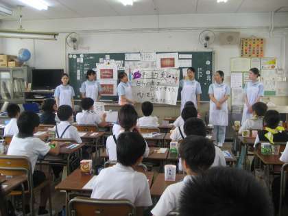 6月13日(水)に、1・3・5年生で歯科衛生士専門学校の学生の方々による歯みがき指導がありました。1年生はむし歯予防によい食べ物と第一大臼歯について、3年生は歯肉炎とよくかむことの大切さについて、5年生は歯周病や生活リズムについて学習しました。歯の染色も行い、みんなで歯みがきの仕方を確認しました。これからも、授業でやくそくしたことを忘れず、みがきのこしがないように、ていねいな歯みがきをづつけてください。