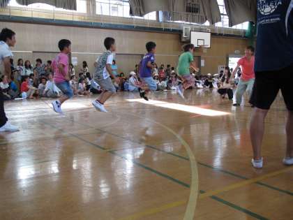 恒例の「長縄大会」。どのチームも熱が入ります。