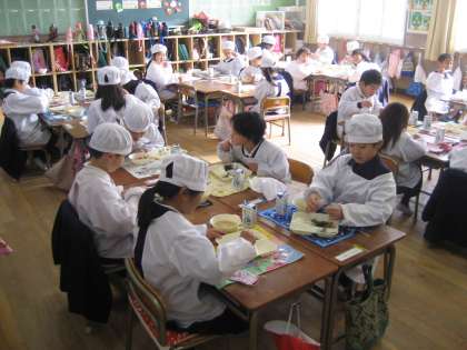 今日から給食が始まりました。寒い冬には温かい給食がありがたいです。