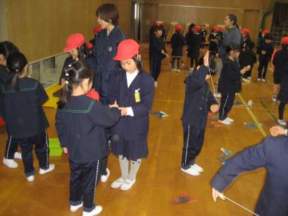 生活科で学習した昔の遊び、こま回し、お手玉、けん玉、羽子板やなわとびを一緒にしました。学校では1年生が一番下の学年ですが、今日はお兄ちゃんお姉ちゃんとして保育園の子たちにやさしく教えている姿がたくさん見られました。