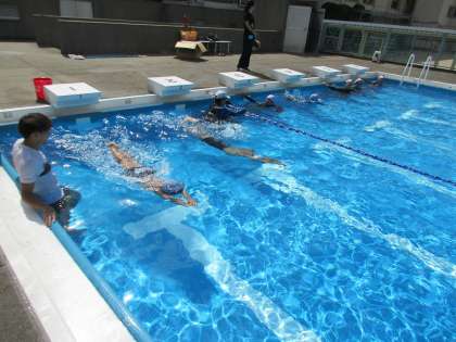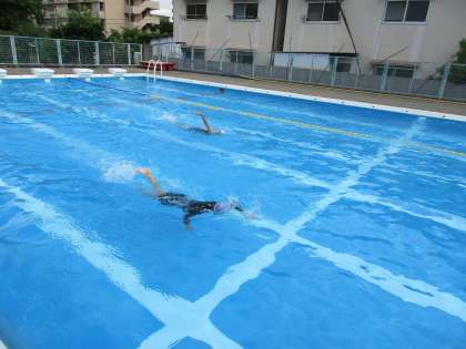 夏休みに入りました。7月22日は7月29日にAsue大阪プールで行われる大阪市児童水泳記録会に参加する5,6年の児童が、学校のプールで練習をしました。大会は50mプールを使用するため、50mを泳ぐ練習や、スタートの仕方、ゴールの着手の仕方を練習しました。普段体育の水泳学習で50mを続けて泳ぐことは少ないので、泳いでみるとかなりしんどかったようです。今週金曜日にもう一度練習があります。公式の大きなプールで泳げるせっかくの機会ですので、当日に向けて頑張ってほしいと思います。
