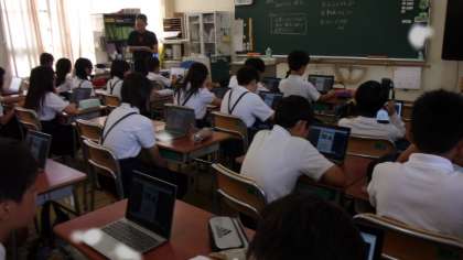 たくさんある企業の案内を見て、見てみたい動画を2つ決めて、動画を各自で見ました。その中に書かれている企業からの課題をどのようにすれば解決できるかということを考えました。明日からは、解決に向けたヒントになる手立てを調べて、企業の課題解決策を作成していきます。