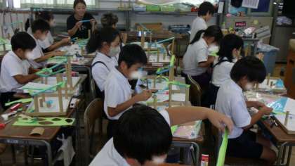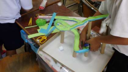 ビー玉ころがしゲームのコースを作っています。ゴールまでの動きを工夫しています。