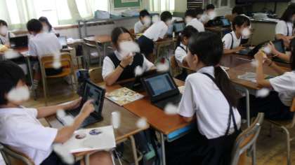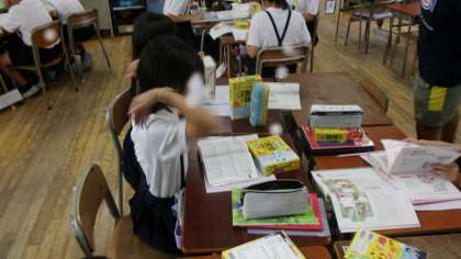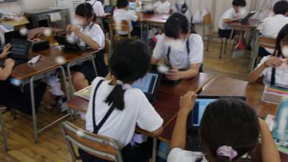 各自で国語辞典を使って調べたことわざをグループに分かれて、ことわざの意味をみんなに分かりやすく伝えられるよう、タブレット端末を使って、発表の仕方を考えていきました。