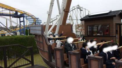 スウィングサンタマリアにはじめは嬉しそうに乗ったこどもたちも、途中から、下向きになって乗り物で固まっている子もいました。