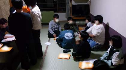 各自で書いたしおりの振り返りを各班でまとめて、班長が持ち寄って話をしました。