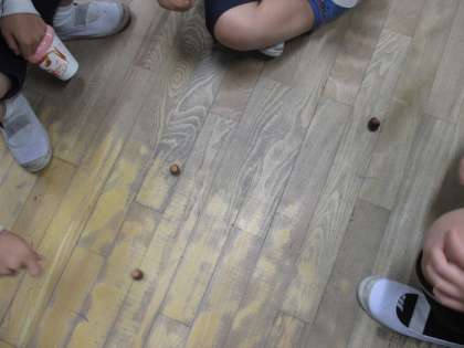 自分たちで工夫しながら作ることができました。作ったコマでお友だちと一緒に勝負をしたり、マラカスの音を聞きながら楽しむ姿も見られました。お家に持って帰りますので、また見てください。