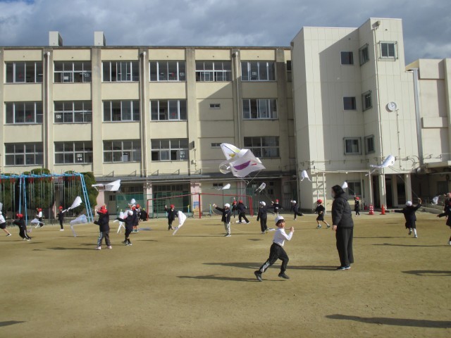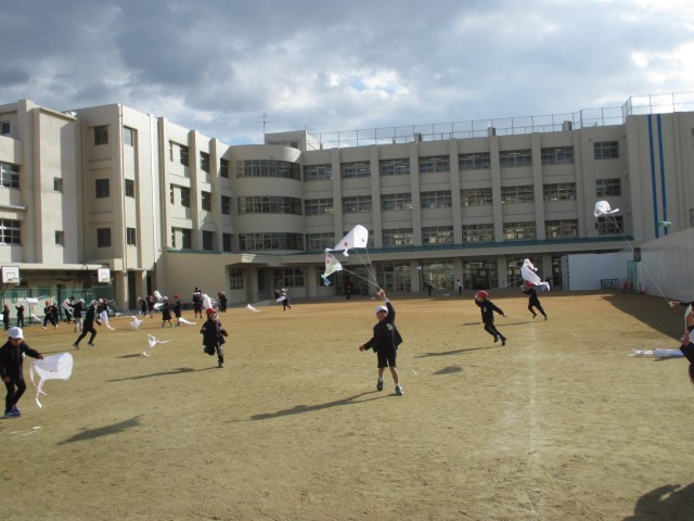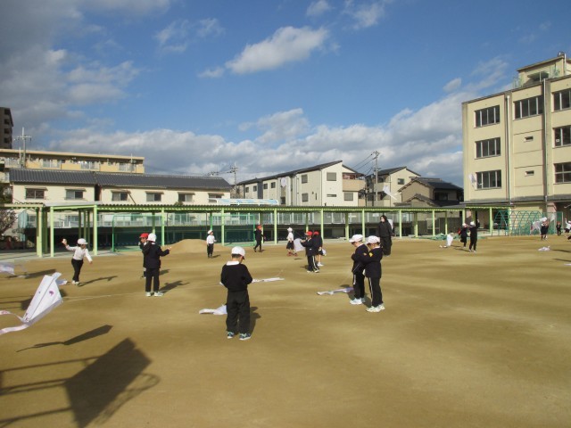 今日は、生活科の時間に自分たちで作ったたこをあげにいきました。
