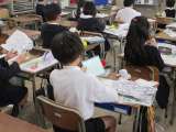 家庭科ではミシンで雑巾作りをしていて、ほとんどの子が完成しました! その後は、小...