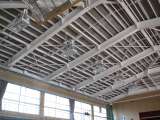体育館の天井です。 鉄骨は、明るいベージュに塗られています。 こんなにも多くの鉄...