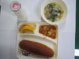 今日の給食は、1年に1回の献立です。 「えびのチリソース」「中華がゆ」 そして、...