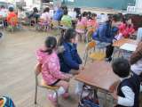 諸口保育園から新1年生として入学する子どもたちです。 1年生の教室で、グループに...