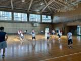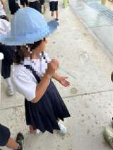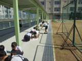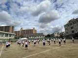 暑い中、運動場での練習を頑張っています。エイサーの時に使用するパーランクを画用...